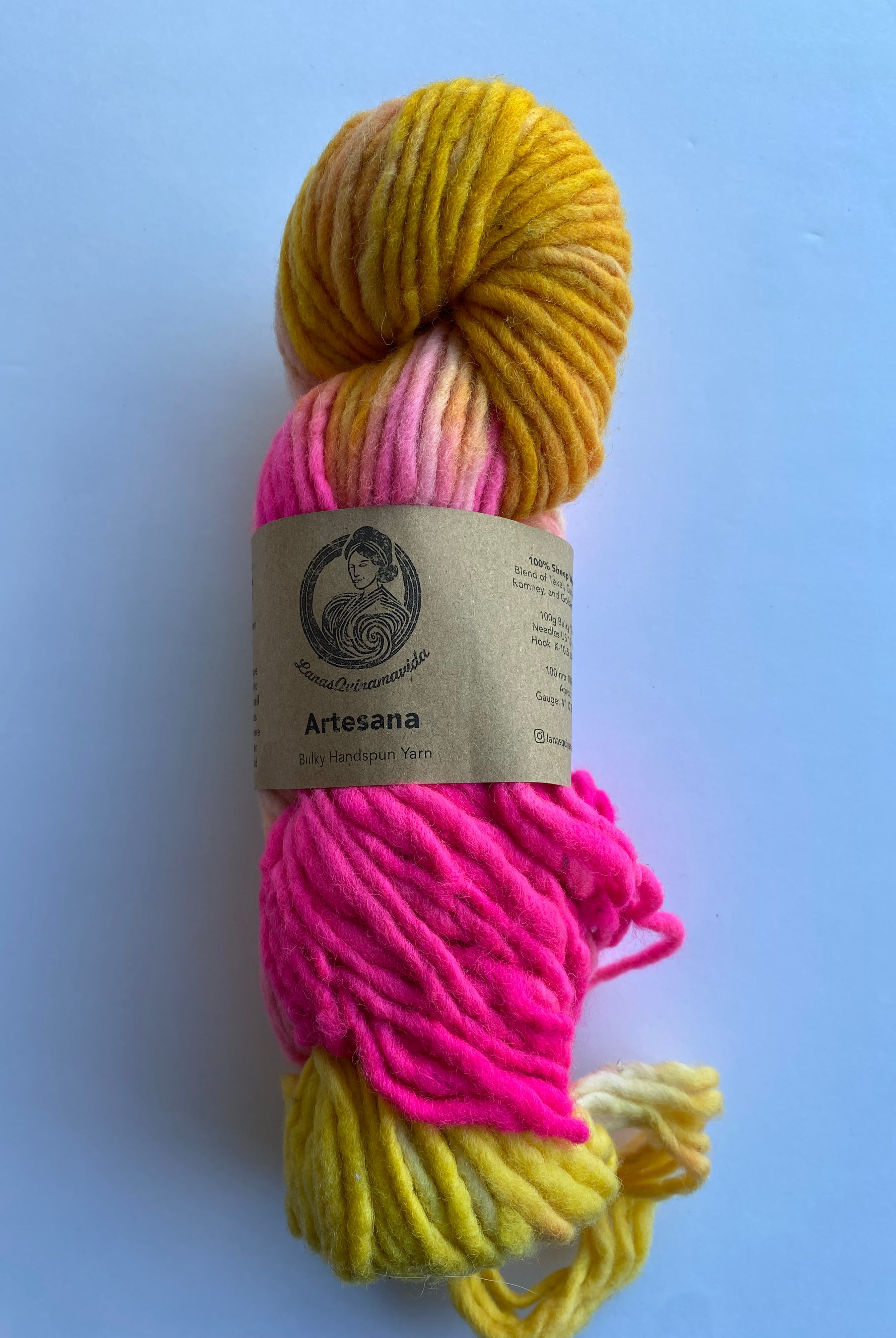 This yarn is as close to tradition as you can get. Hand-spun by Pamela from a small town in Chile, each skein is a testament to the art of 'artisanally' crafted yarn. It’s washed with pure, rain-collected water and retains the natural texture and rustic feel of authentic Chilean yarn-making. Every fiber carries the touch of skilled hands and a dedication to preserving cultural heritage. If you’re looking for a skein that brings genuine tradition to your projects, this artisanal yarn delivers it in every thread.