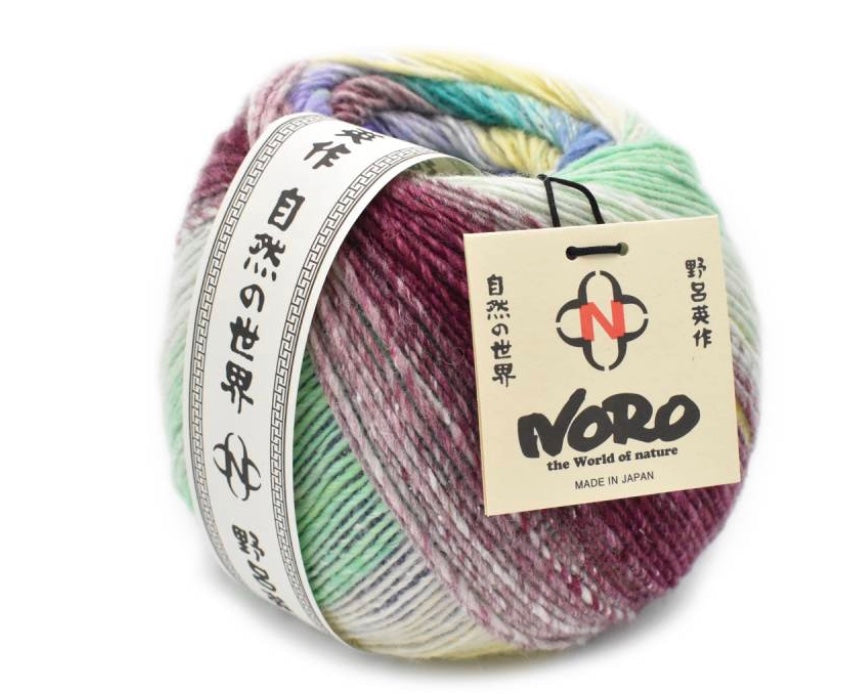 Let yourself be swept away by the vibrant beauty of Koma, a showstopping yarn from Noro that captures the essence of Japanese artistry. Spun from a luxe blend of 45% wool, 35% mohair, and 20% silk, Koma delivers the perfect balance of warmth, softness, and luster — all wrapped up in Noro’s signature self-striping palette. Each ball is layered with waves of color that play out like the swirls of a spinning top — a joyful dance of hue and texture. In fact, Koma takes its name from the Japanese word for a spinning top, a fitting tribute to the yarn’s sense of motion and playful energy. With a generous 443 yards per 150-gram skein, Koma is perfect for statement shawls, cozy garments, and any project that calls for color and character. The lofty mohair halo adds softness and depth, while silk threads in a subtle sheen that elevates every stitch. Whether you’re crafting bold contrasts or painterly gradients, Koma is a celebration of creativity — inspired by nature, tradition, and the timeless joy of making.